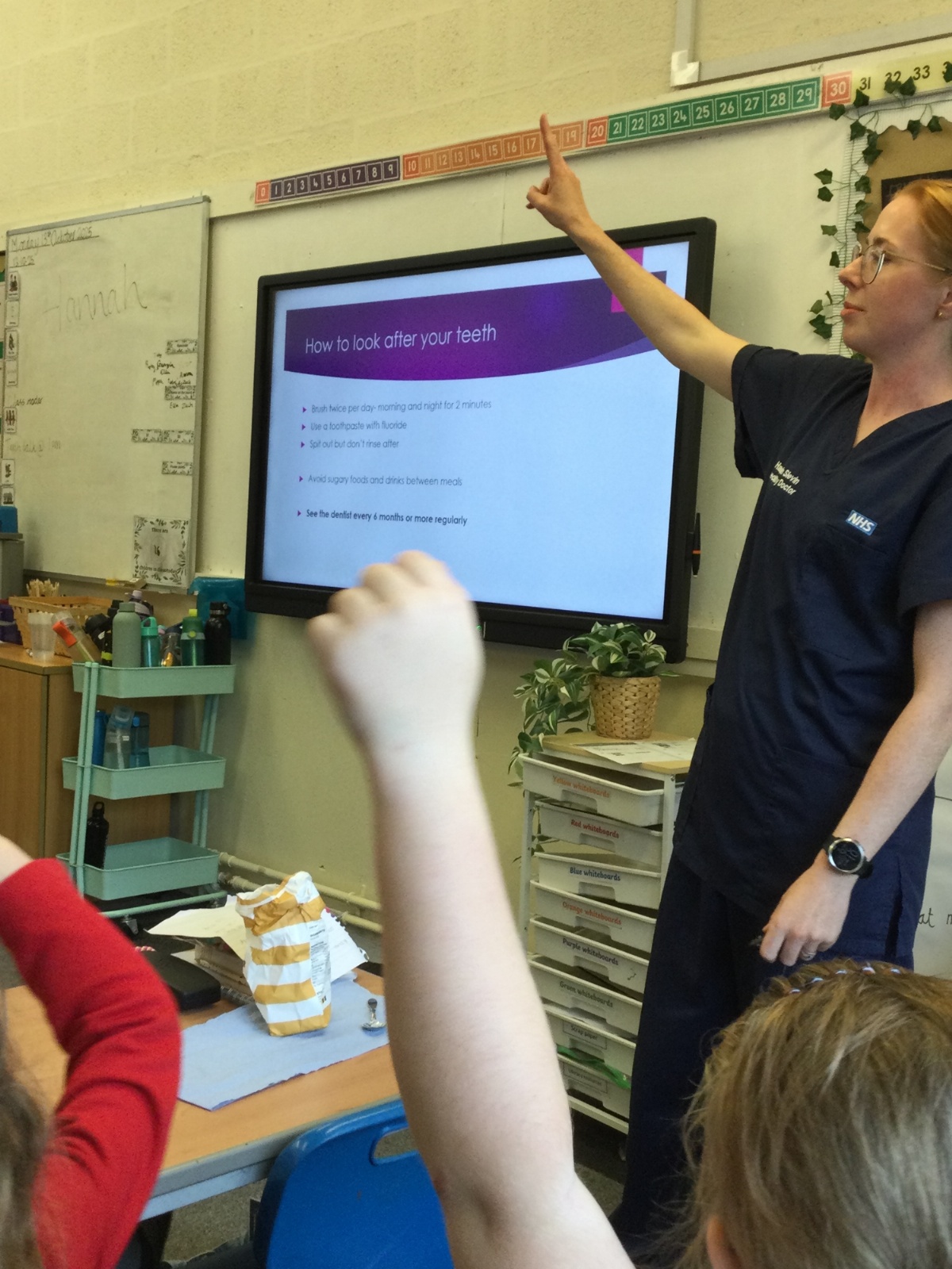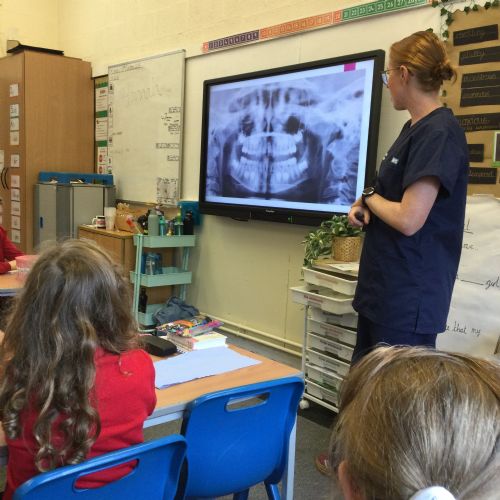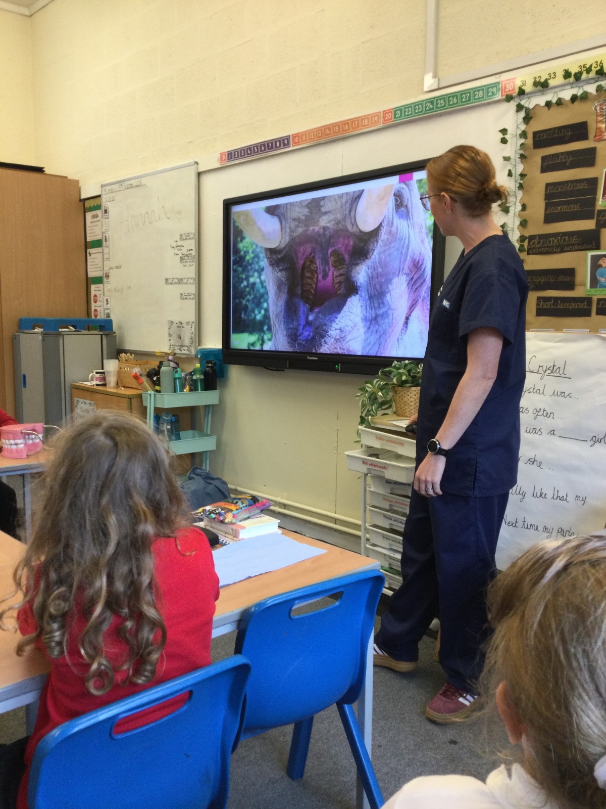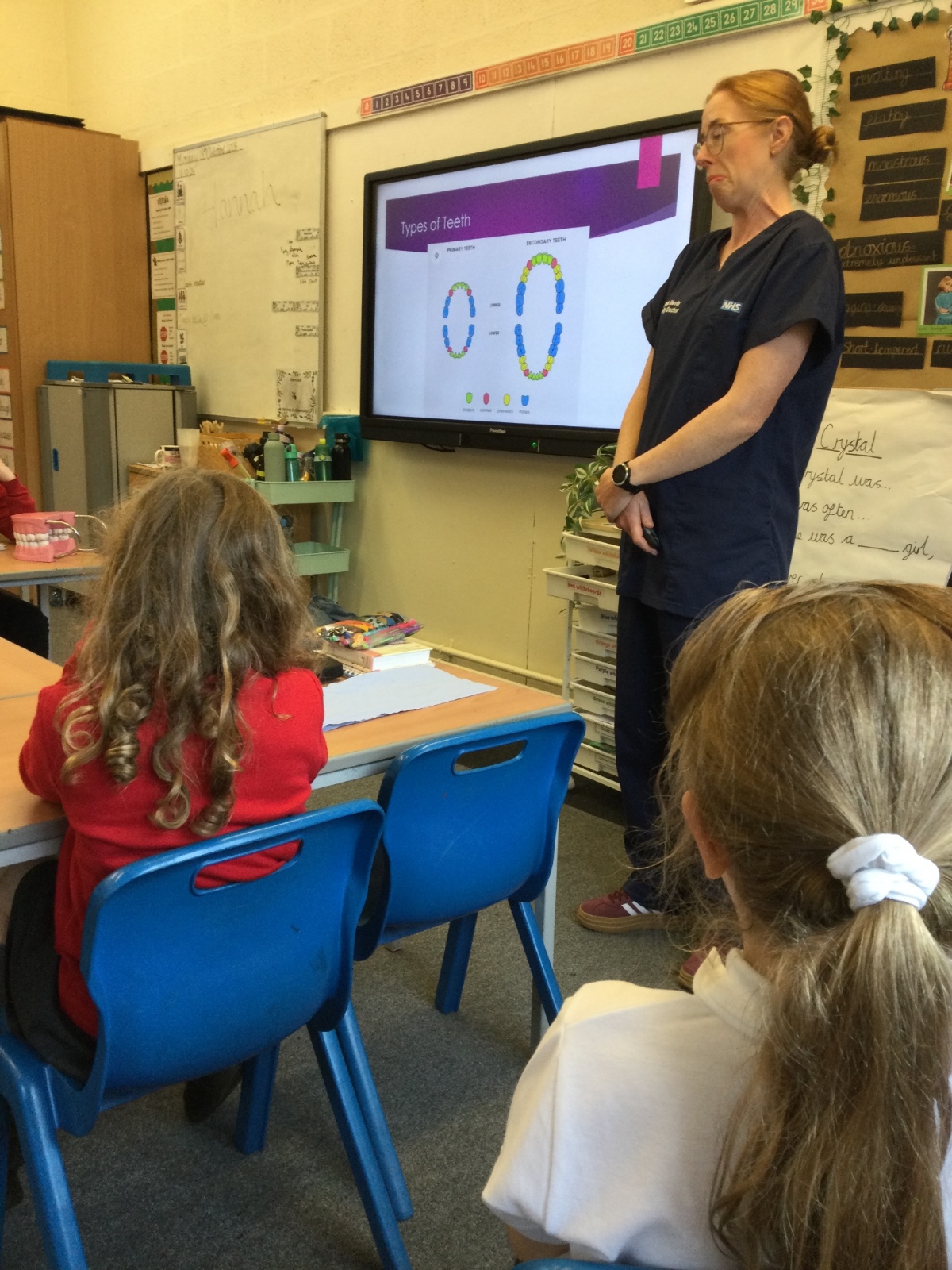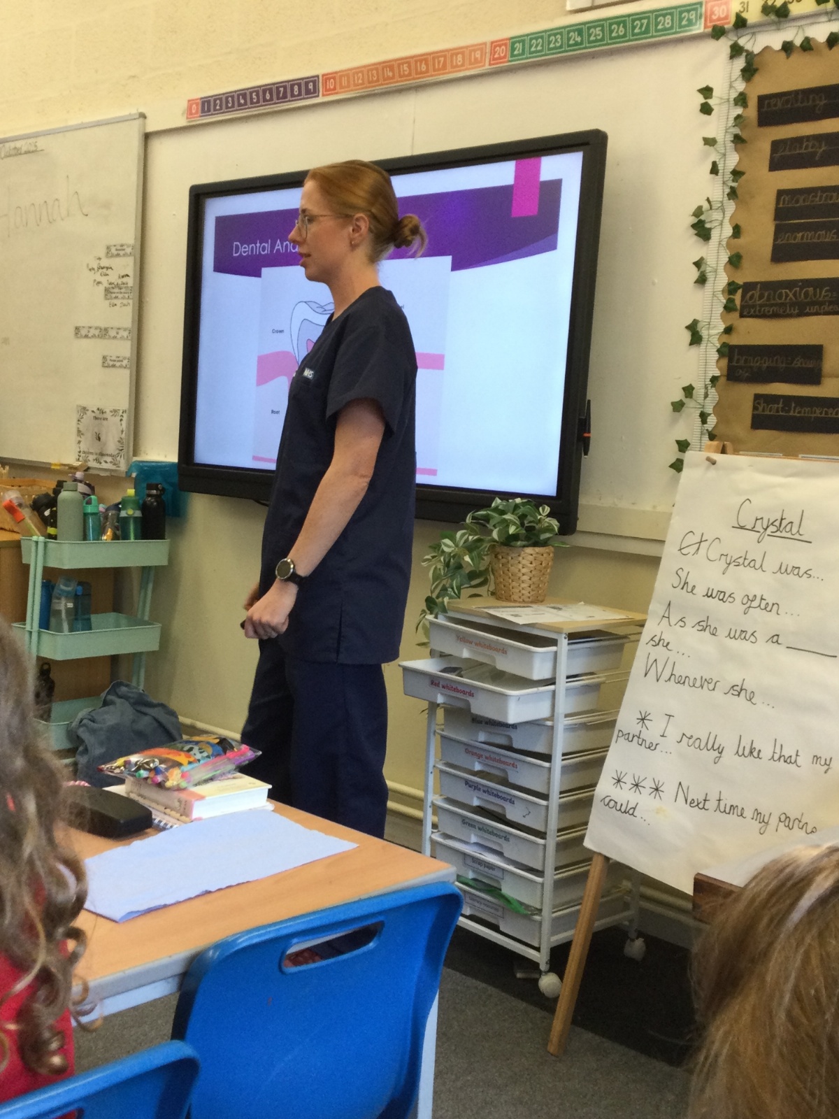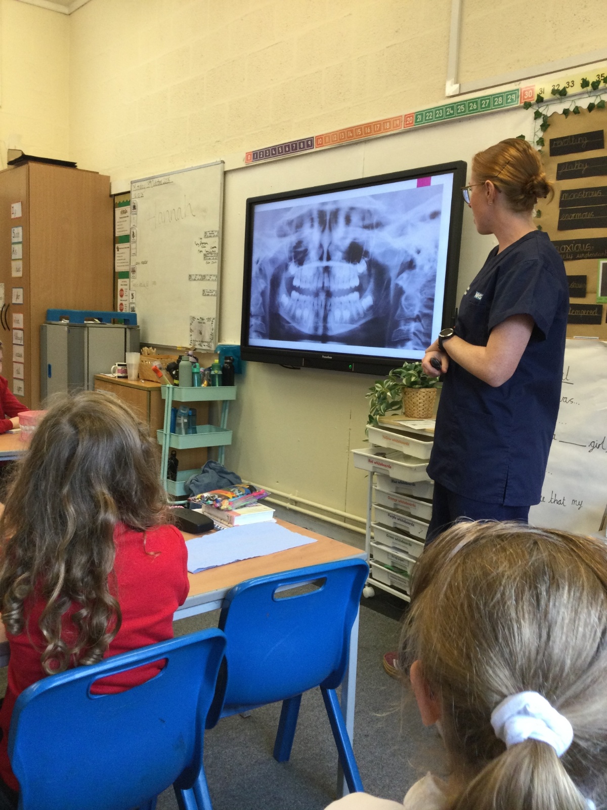We have been learning about the different types of teeth as part of our 'Digestive System' topic. We were lucky enough to receive a visit from a real dentist this term, who talked to us about how to keep our teeth and gums healthy whilst also showing us some cool X-Rays of teeth and looking at different animals' teeth. Thank you for coming in Hannah!