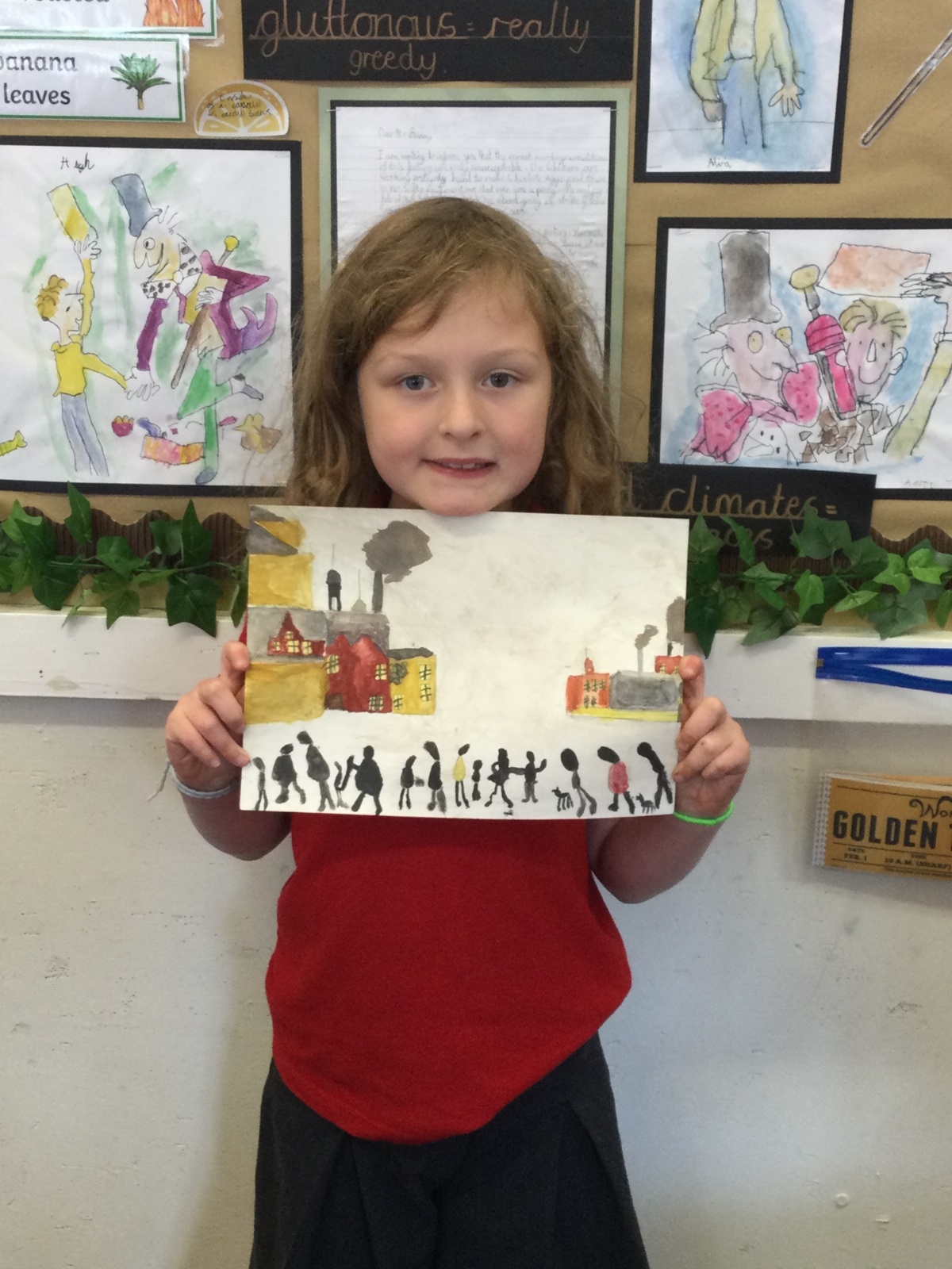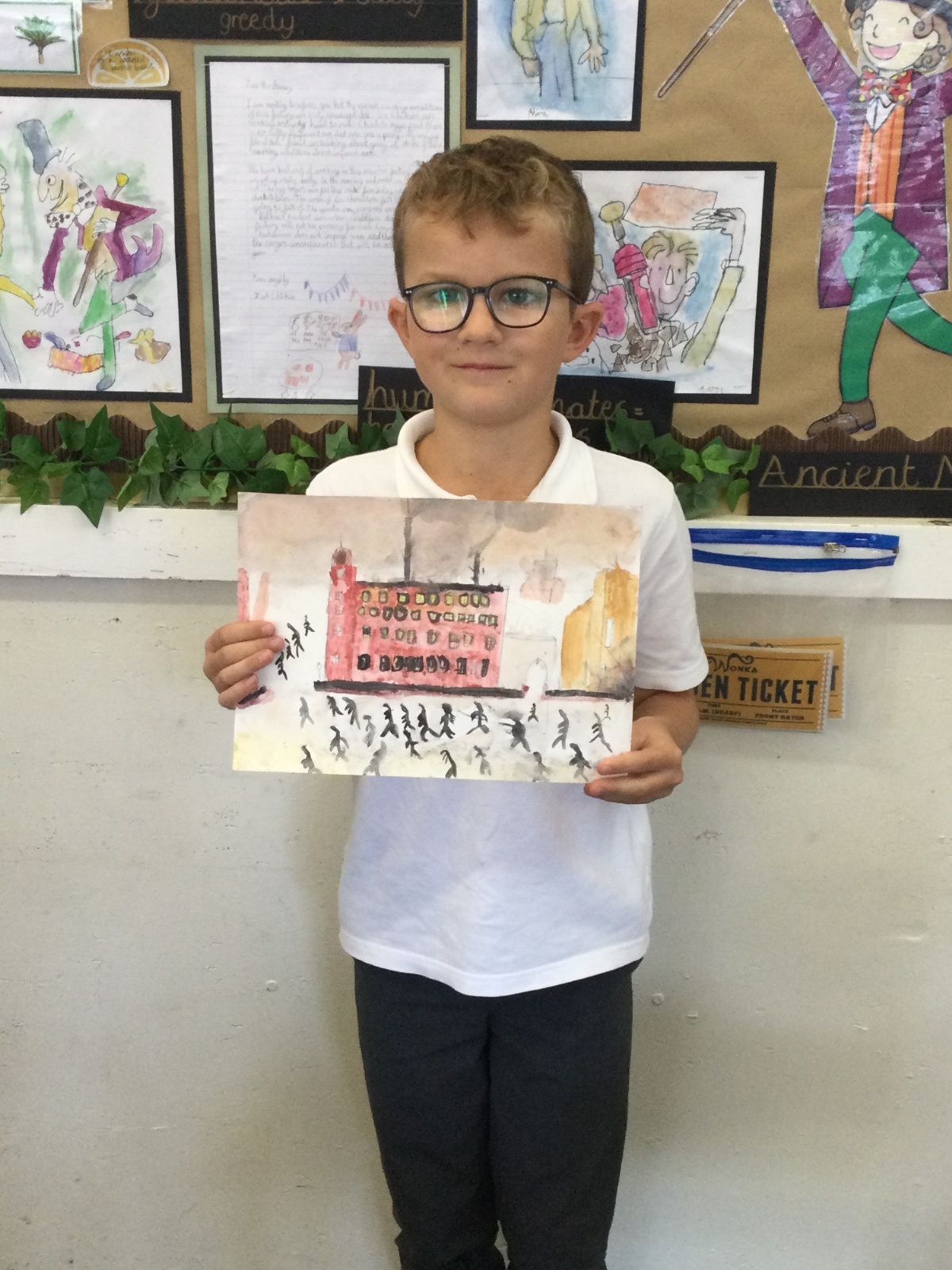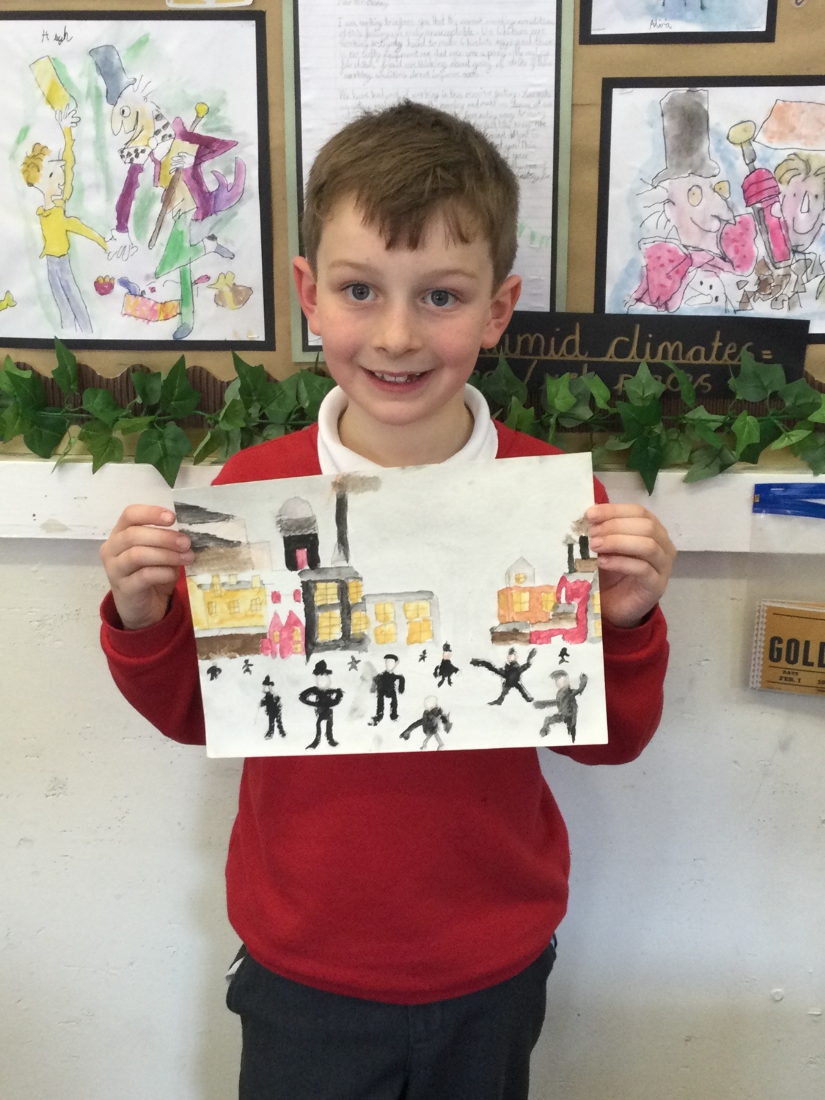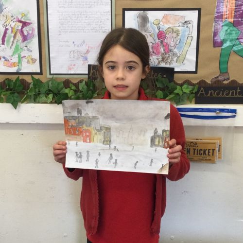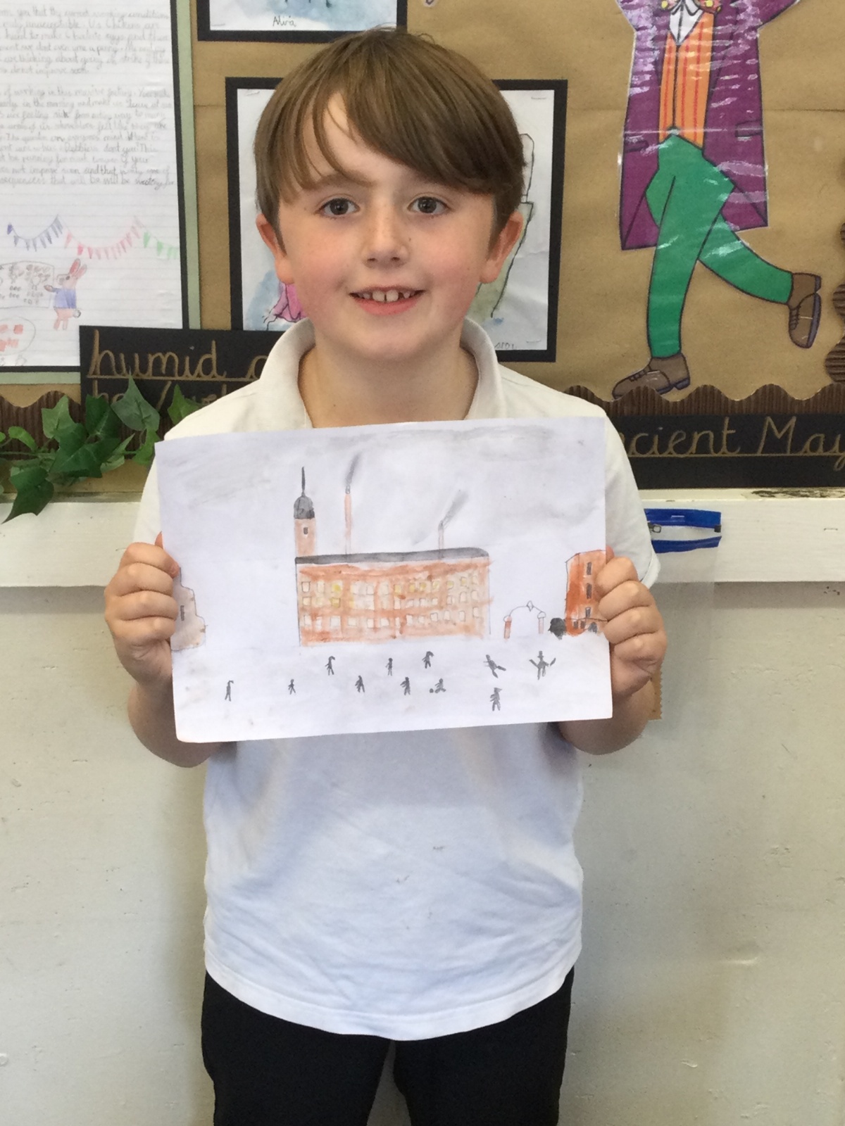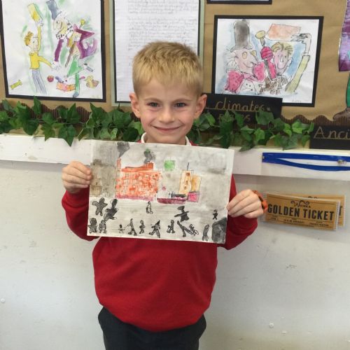 As part of our 'Chocolate' topic, we learn about the industrial revolution and the rise of factories in England. We studied the artist L.S. Lowry and replicated his paintings, considering carefully his 'match stick men' and his restricted colour pallet when creating his city landscapes. We are so proud of our pictures!