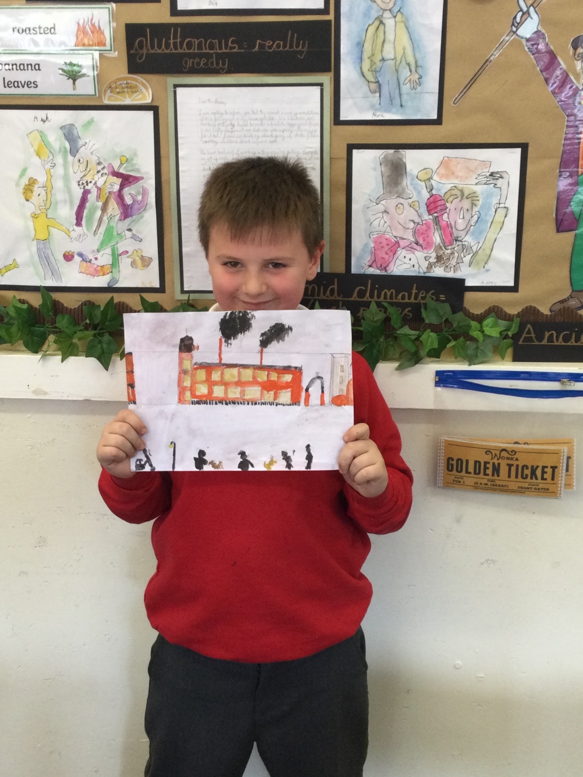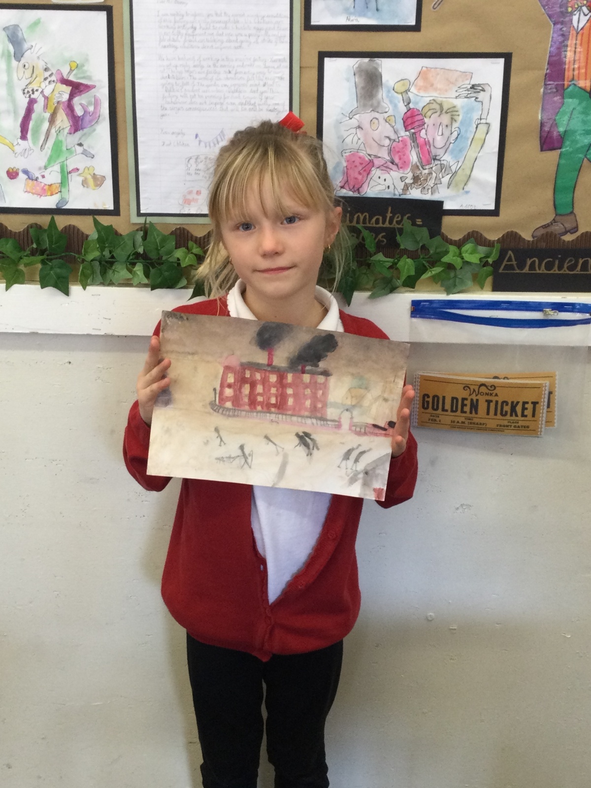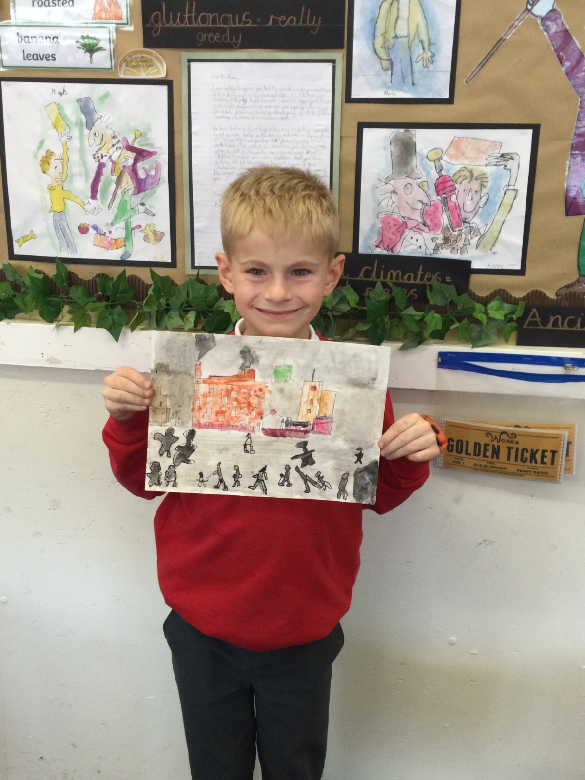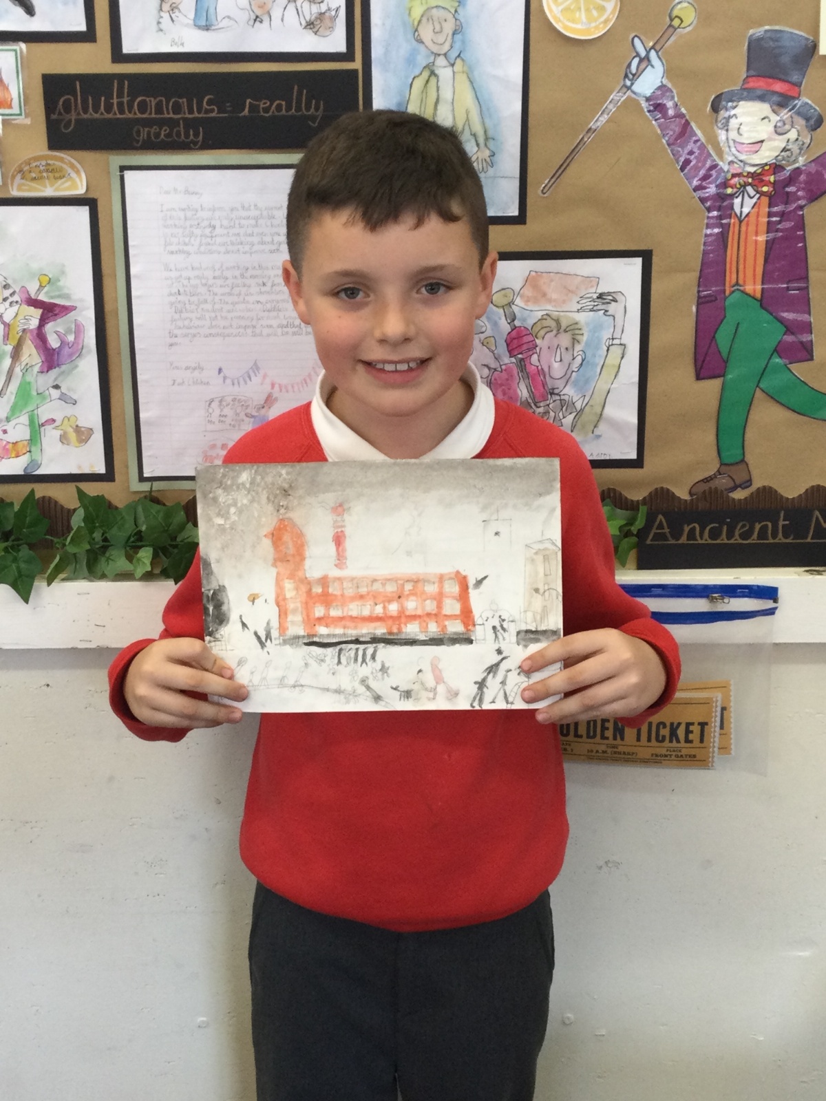 As part of our 'Chocolate' topic, we learn about the industrial revolution and the rise of factories in England. We studied the artist L.S. Lowry and replicated his paintings, considering carefully his 'match stick men' and his restricted colour pallet when creating his city landscapes. We are so proud of our pictures!