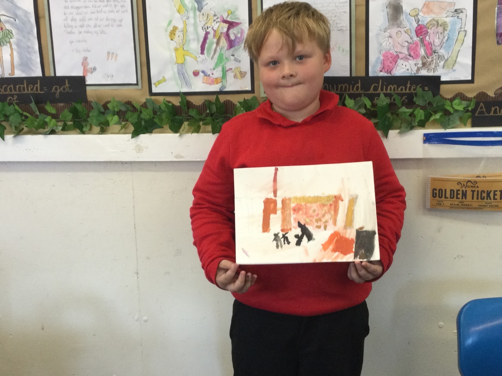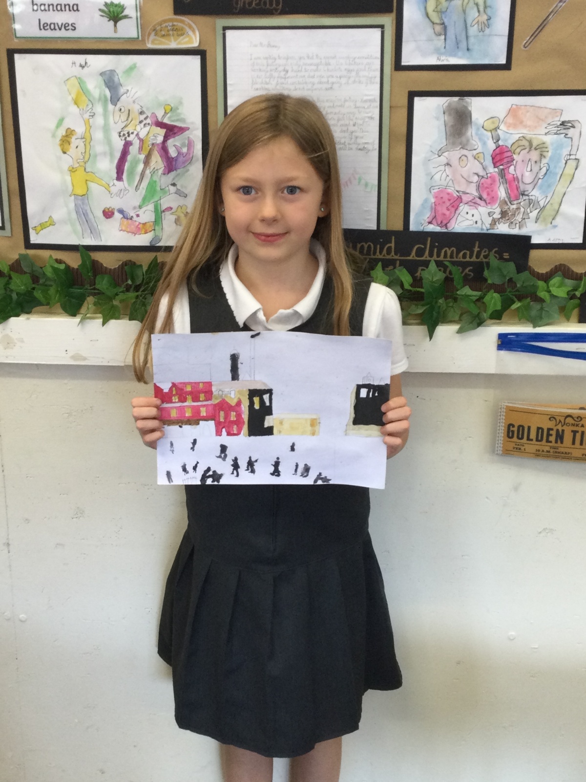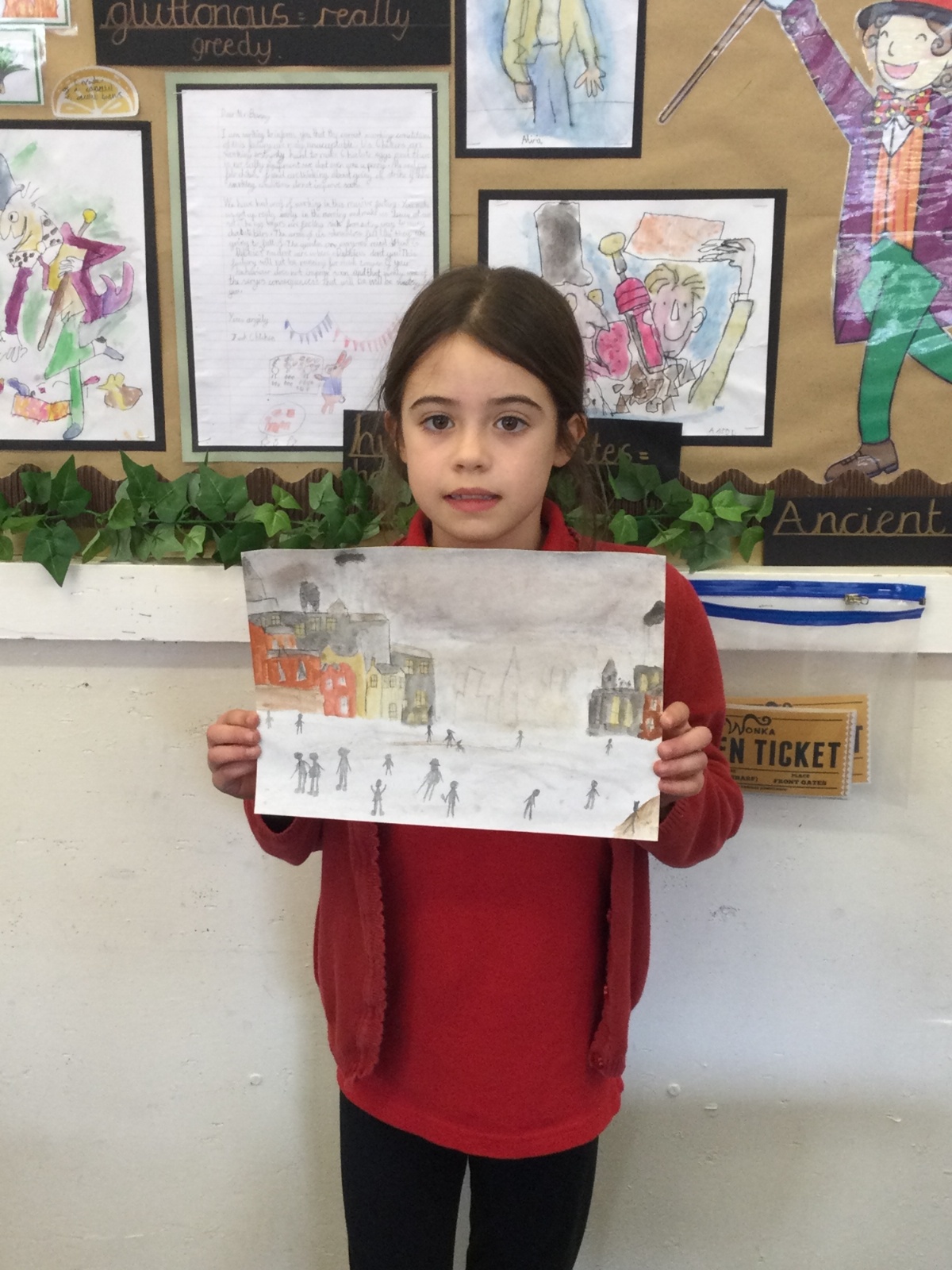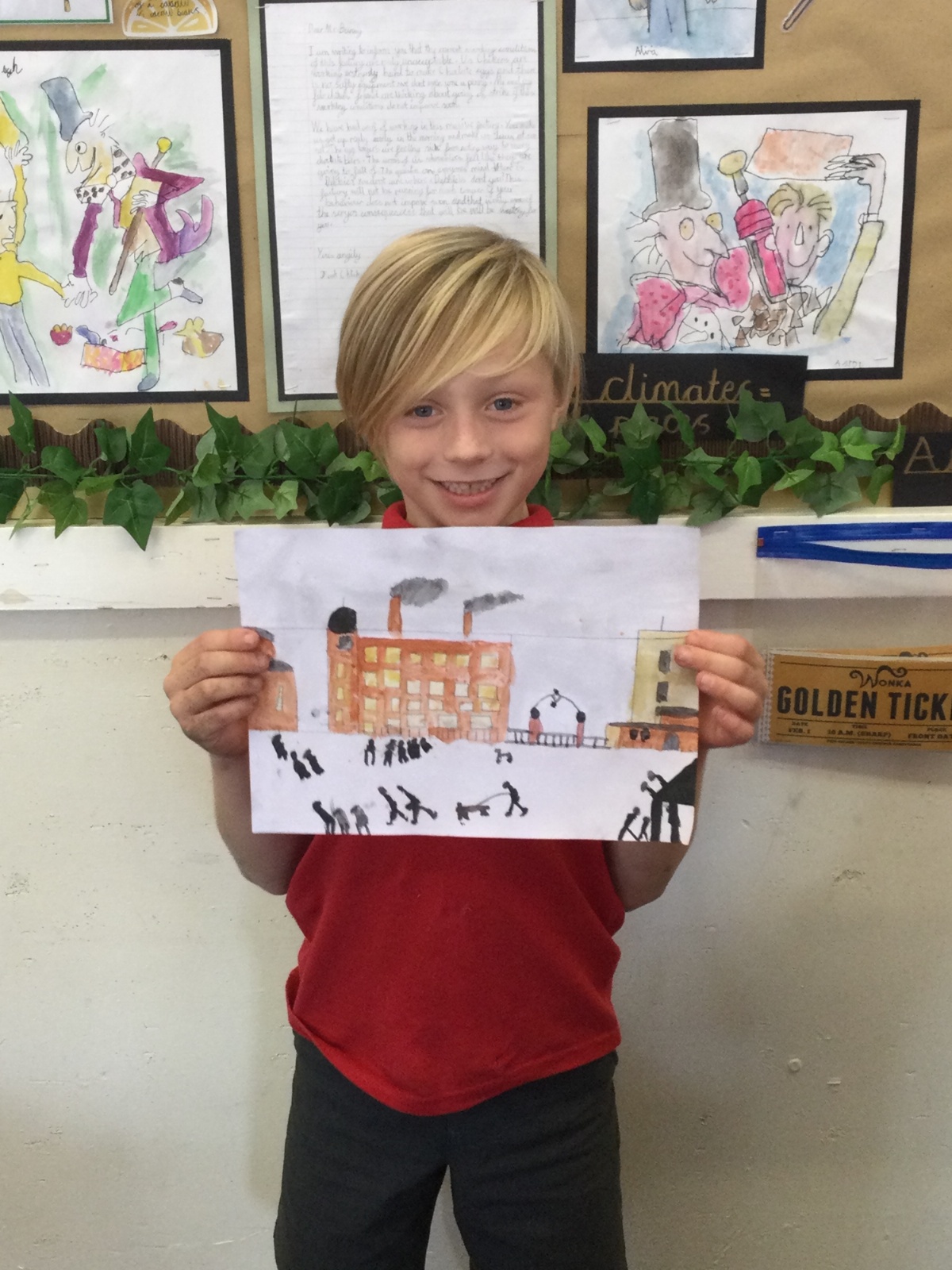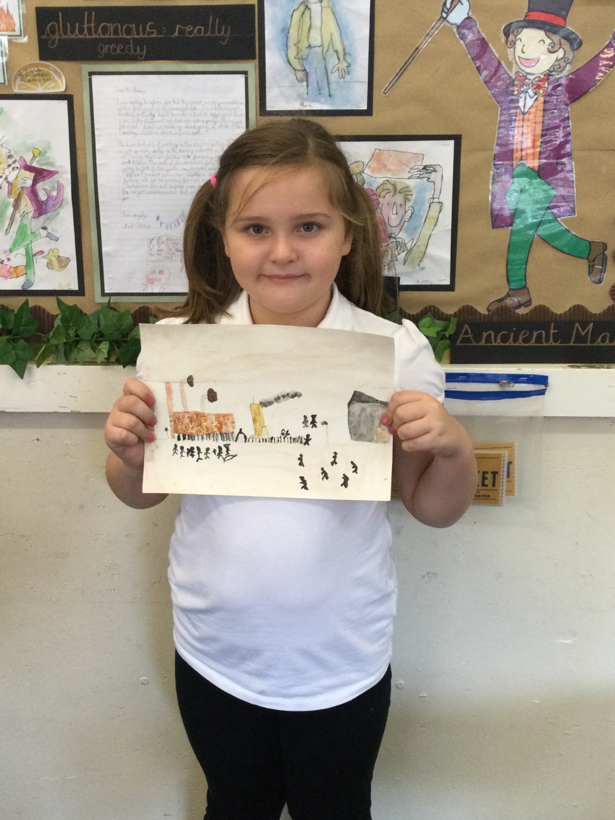 As part of our 'Chocolate' topic, we learn about the industrial revolution and the rise of factories in England. We studied the artist L.S. Lowry and replicated his paintings, considering carefully his 'match stick men' and his restricted colour pallet when creating his city landscapes. We are so proud of our pictures!